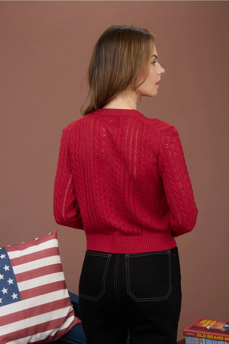 Add a cozy yet stylish staple to your wardrobe with our Cable Knit Button Down Cardigan. Made from a soft merino wool blend, this cardigan features a round neckline, long sleeves, and a functional button down design. The ribbed knit trim and cable knit pattern add a touch of texture. Perfect for layering or wearing on its own, this cardigan is a must-have.